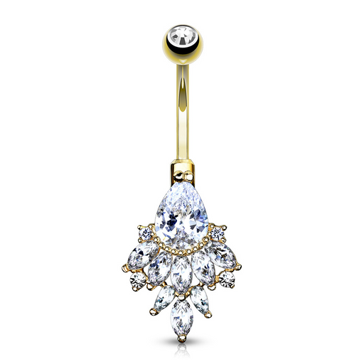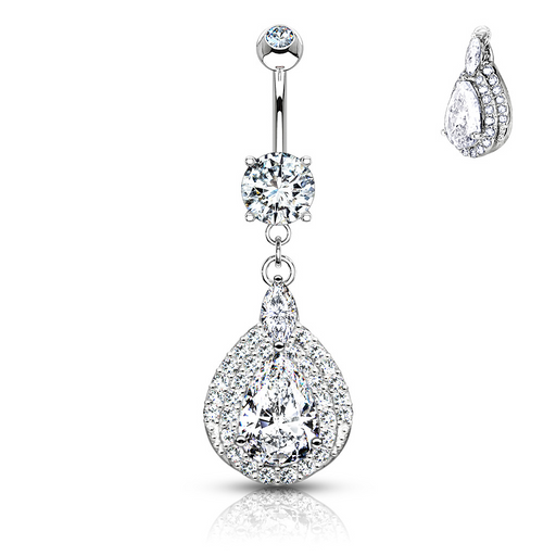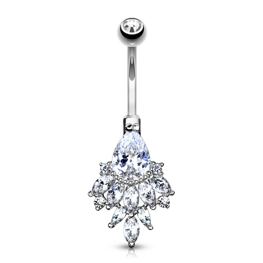 How beautiful is this 14k pear CZ cascading oval cluster Belly Ring. This is a gorgeous sparkling belly ring that is classy and stylish in every w...