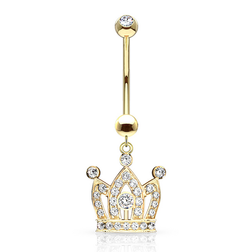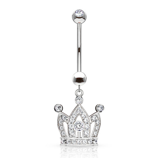 PRE-ORDER ITEM *This item is back-ordered and will ship once it is back in stock* 14k gem paved crown dangle solid white gold belly ring. You'll be...