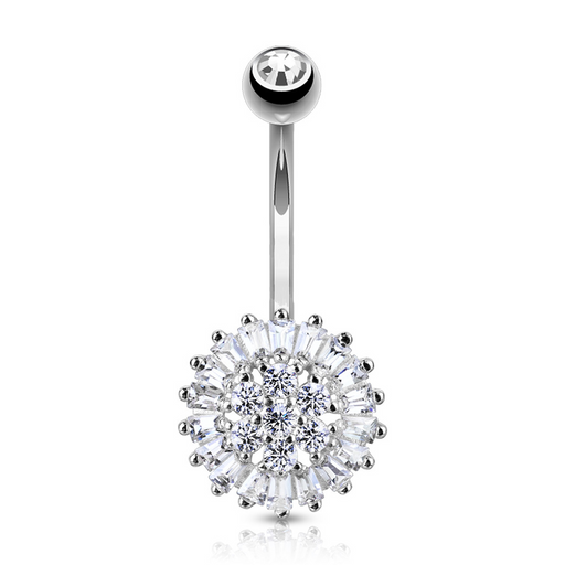 How beautiful is this 14K Sun Flower White Gold Belly Ring. This is a beautiful sparkling belly ring that is classy and stylish in every way. This...