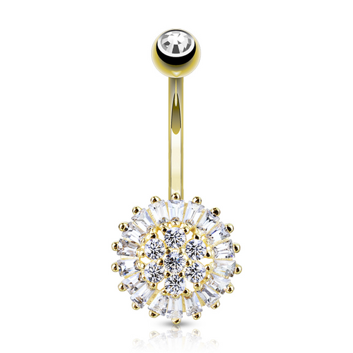 Gorgeous Ferido White Gold Swarovski CZ paved ball belly ring. Dazzling 14k real gold belly rings are absolutely stunning. Enjoy the luster of bril...