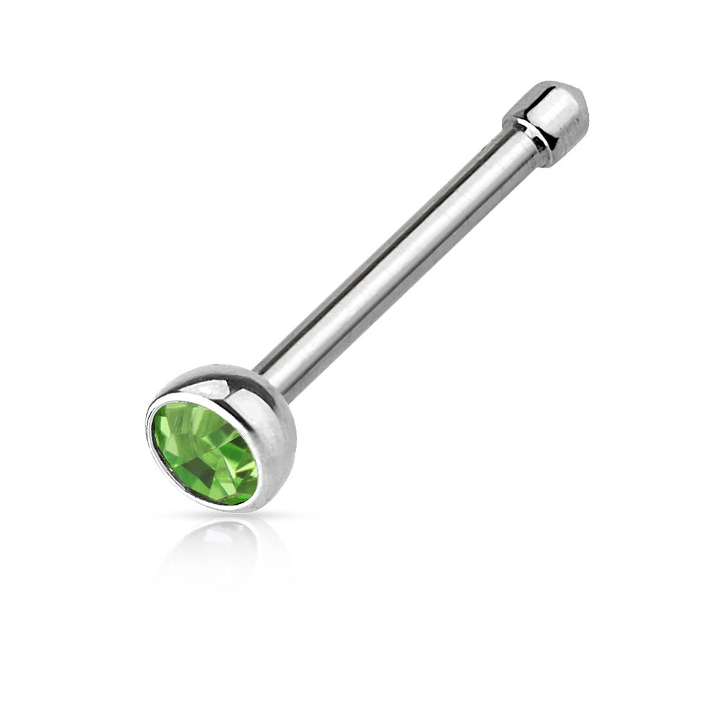 Wear this fun green cubic zirconia nose ring and show off your love of money, summer, Irish fun, or just because you love the color. Green symbolizes many things and why not show off this spunky nose bone nose ring and make your friends "green" with envy.