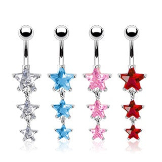 Stars are always a delight and why not wear them on your belly button ring. The dangling triple star gems on this flirty belly ring are a triple de...