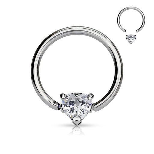 Captive Ring with Heart Gem. 14 GA. 5mm ball. 1/2" diameter. 316L Surgical Stainless Steel material. Captivate someone special heart with a flirty ...
