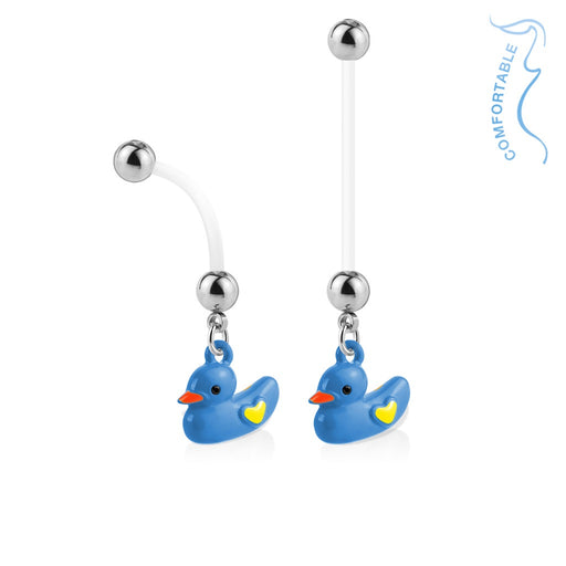 Blue Duckling Pregnancy Belly Ring perfect for your growing baby belly! Flexible Bioflex with 316L Surgical Steel Balls. 1" barbell. Cut to size. 1...