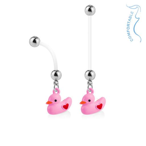 Pink Duckling Pregnancy Belly Ring perfect for your growing baby belly! Flexible Bioflex with 316L Surgical Steel Balls. 1" barbell. Cut to size. 1...