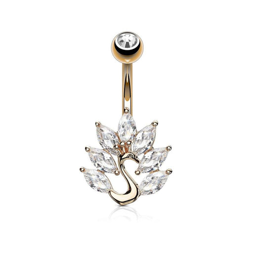 Marquise Peacock Belly Ring in Rose Gold. Gorgeous Cubic Zirconia gems surround this beautiful bird. 14 GA. 3/8" barbell. 316L surgical steel mater...