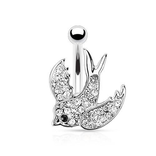 This adorable little bird is the perfect fit for any day! It's clear paved gems give a ton of sparkle and the style in this non dangling belly ring...