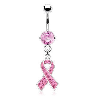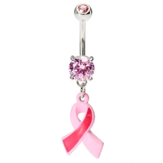 Pink Crystal Awareness Ribbon Dangling Belly RingOctober is breast cancer awareness month, but that doesn't mean you can't show your support for th...