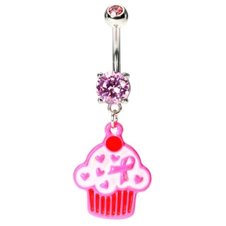 Show your support with this "sweet" pink ribbon belly ring. This dangling cupcake shows of a pink ribbon that is sure to make anyone proud. Show of...