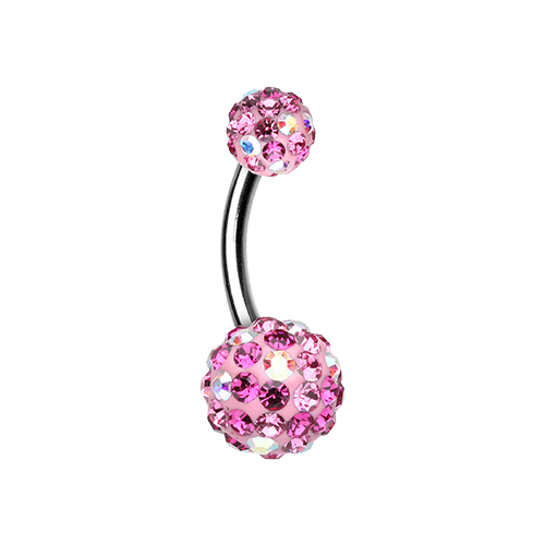 The colors are vibrant and beautiful in this one! Hot Pink, Light Pink and Iridescent gems sparkle all over! 5mm ball top X 8mm ball. 14GA. 3/8" ba...