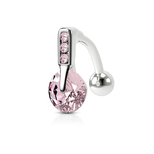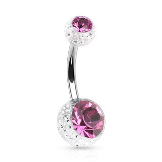 Round Gem Top-Down Navel Ring. A great little size with a classy look. Pink gems that sparkle sparkle sparkle! 14GA. 3/8" barbell. 316L Surgical St...
