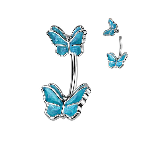 Blue 316L Surgical Steel Belly Button Ring With Double Butterfly Subtle, sexy, and sweet! These butterflies hug your piercing to make this a perfe...