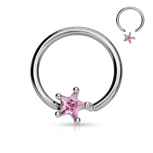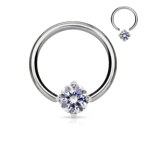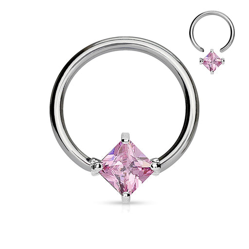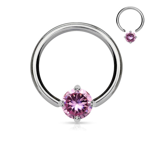 Solitaire Cubic Zirconia Stone Capitve Bead Ring. 316L Surgical Steel material. 14 GA. 1/2" around. Available in Clear, Pink and Aqua. Captive Bead...