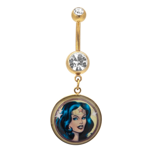 Non Dangle Wonder Woman Belly Ring. Officially licensed DC Comics body jewelry. 14GA. 7/16" barbell. 316L Surgical Steel material. Wonder woman log...