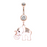 Beautiful Rose Gold and White with Clear Crystals Dangling Elephant Belly Ring. What a show stopper! Elephant charm is 3/4" wide. Tons of sparkle and style in this adorable cute elephant belly ring. 14GA. 3/8" barbell. Surgical Steel material.