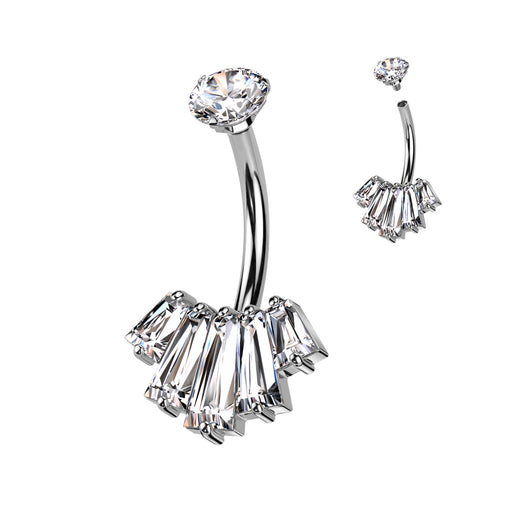 316L Surgical Steel Hinged Pave CZ Belly Button Ring With Marquise CZ Flower Dangle Crystal Bloom Hinged Belly RingTurn heads with timeless sp...