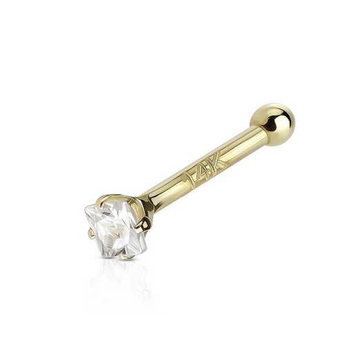 14kt Gold Nose Stud Ring with Prong Set Square Cubic Zirconia. Get the best in body jewelry and go for real 14K gold! Stamped with 14K on the side....
