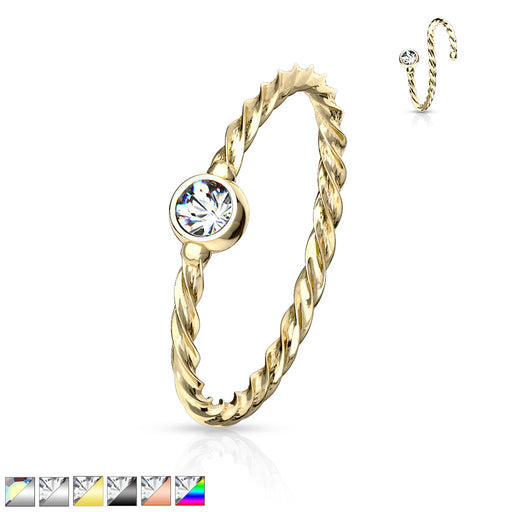 Crystal Set Twisted Rope 316L Surgical Steel Bendable Hoop Nose Ring Available in iridescent, silver, gold, black, rose gold, and rainbow! Cute a...