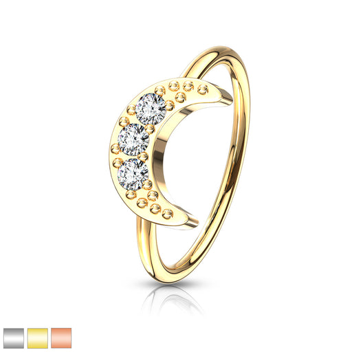 CZ Paved Crescent Moon Nose Hoop Rings. Available in silver, gold, and rose gold! Cute and dainty with crystal accents on the moon. -20 gauge-5/16...