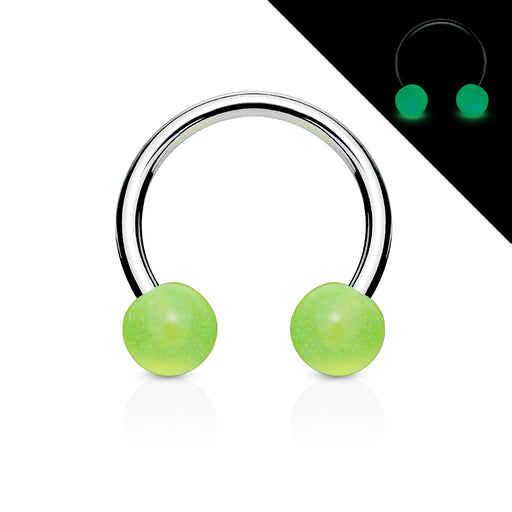 Glow in the dark with this green horseshoe ring! Great for septum, belly ring, labret, and more! 316L Surgical Steel 1/2" length Glow in the dark...