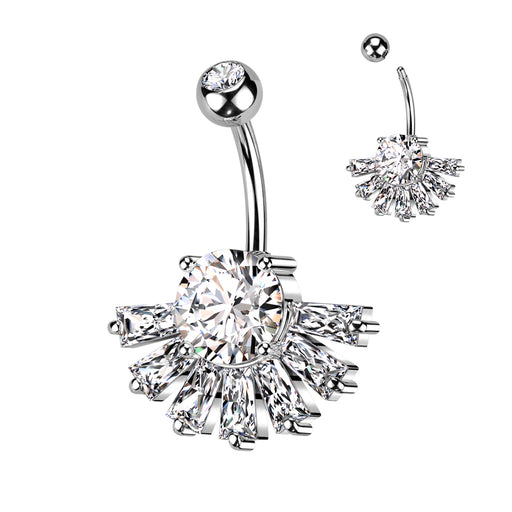 316L Surgical Steel Hinged Pave CZ Belly Button Ring With Marquise CZ Flower Dangle Crystal Bloom Hinged Belly RingTurn heads with timeless sp...