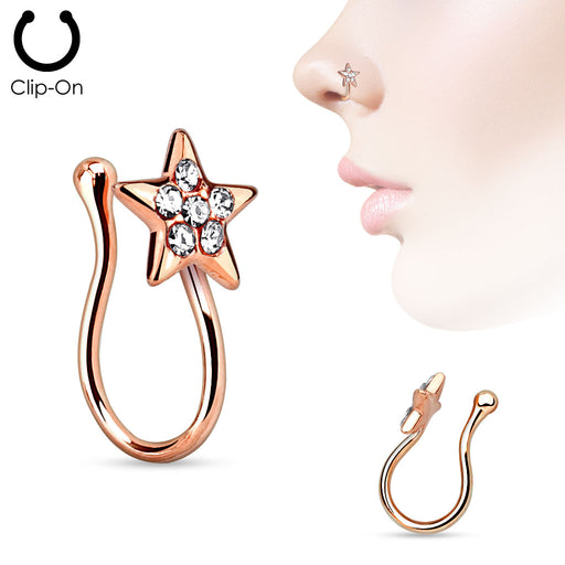 Rose Gold Star with Gems Fake Clip On Nose Ring