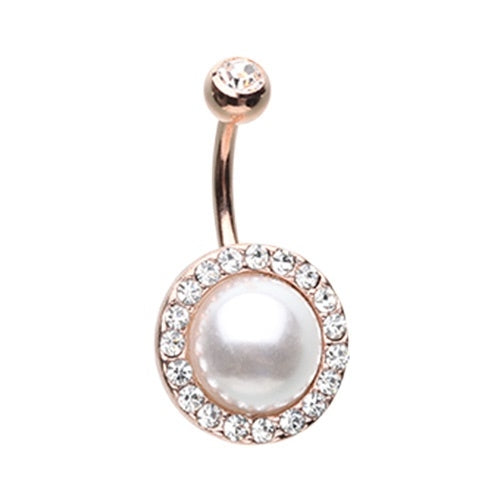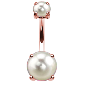 Rose Gold Prong Set Pearl Belly Ring. This is elegant, classy and unique! It's a real beauty. White pearl and rose gold color are stunning. 14GA. 3...