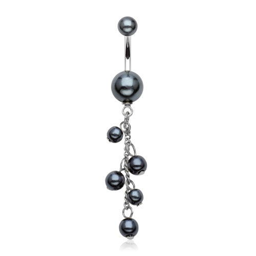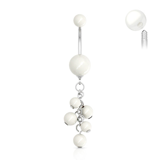 Add some beauty to your elegant collection with the look and feel of this fun elegant white faux pearl belly ring. This pretty dangling navel ring ...
