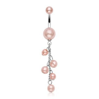 Add some pink to your elegant pearl look and look amazing when you wear this fun elegant pink faux pearl belly ring. This pretty dangling navel rin...