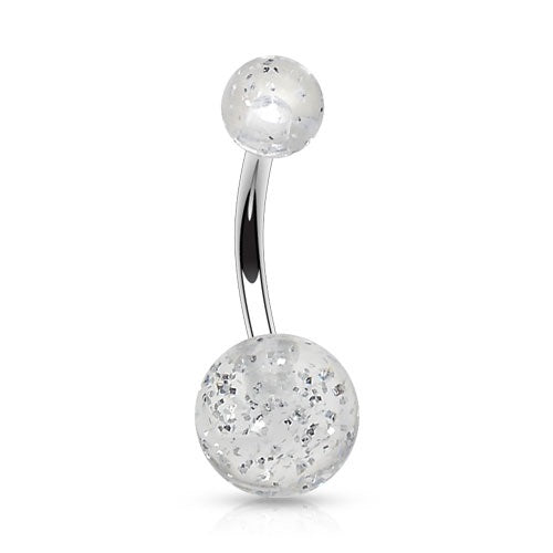 Clear Glitter Acrylic Ball Belly Ring. Simple style, look and feel. Glitter gives this naval ring just the amount of sparkle it needs. 14 GA. 7/16"...