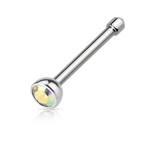 Clear Gem Nose Ring - 18 Gauge - 316L Surgical Steel - 2mm clear press fit gem - 3/8" End to End Length