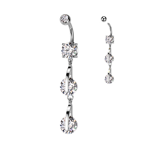 Silver 316L Surgical Steel Belly Ring With Pave CZ on Double Ring and CZ on Top and Bottom of the Rings The dangle paved cubic zirconia ring accen...