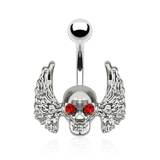 The piercing red eyes of this skull with wings make this the perfect combo of spooky and sassy. 316L Surgical Steel14 GA3/8" length