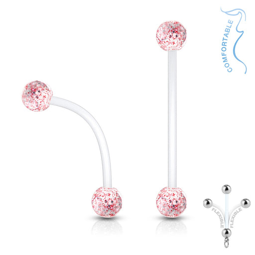 Glitter Ball Belly Ring for Pregnancy. Comfortable and will grow with your bump! 6mm glitter balls on each end. 1" flexible bar. 14GA thickness. Av...