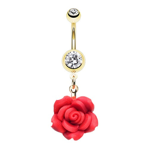 Red Dangling Mini Roses Belly Ring. Metal Roses delicately dangle from this Surgical Steel belly ring to give you a delicate look all year. A singl...