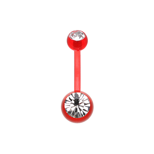 Bio flexible gem ball acrylic belly button ring is both flexible for comfort and full of sparkle for some extra glam! 14 GA. 3/8" barbell. 5mm X 8mm.