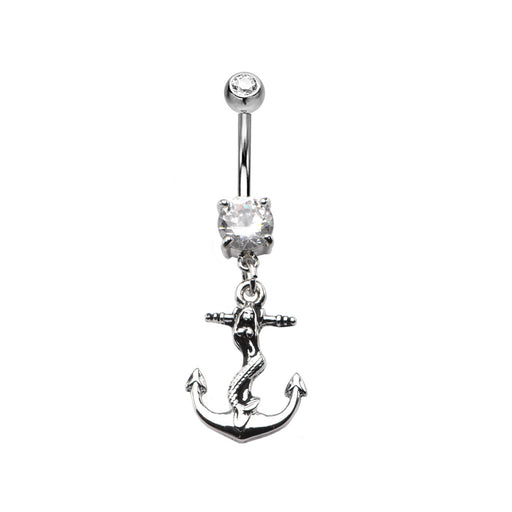 Dreaming of the sea? This mermaid on an anchor belly ring is sexy and perfect for summer! Anchor is 1/2" wide and dangles at 7/8". 14 GA and 7/16 b...