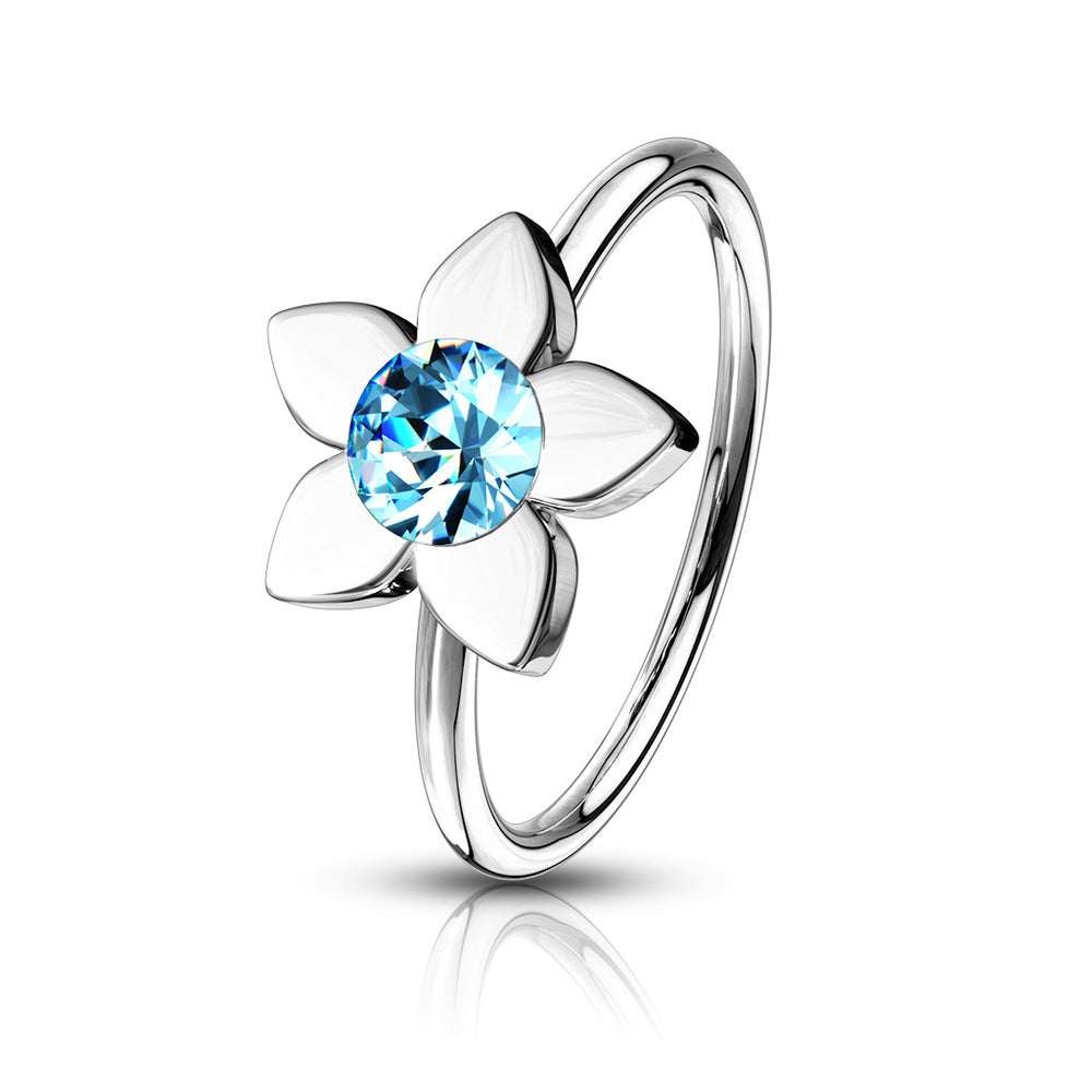20 Gauge Surgical Steel Jeweled Flower Nose Hoop Ring - Blue