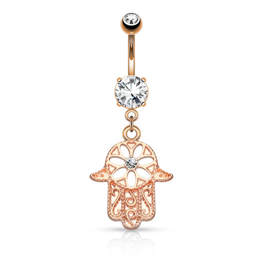 Beaded Outline Hamsa with Center CZ Dangle Navel Ring in beautiful rose gold color. This sparkling Hamsa Naval Ring is delicate and stunning. If yo...