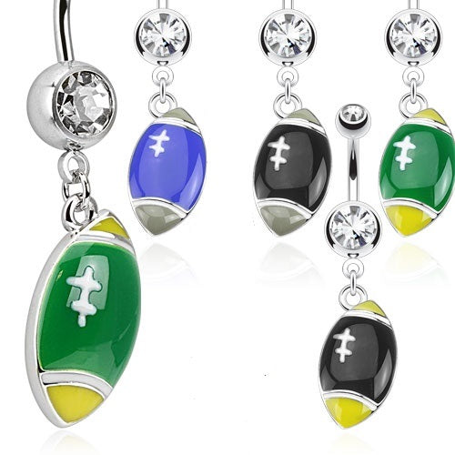 Football Belly Rings are here! Show your team spirit wearing your very own football belly ring available in 4 different colors; green/yellow (green...