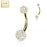 14k Solid Gold Swarovski CZ Paved Ball Ferido Belly Ring