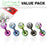 5 Pcs Value Pack of Assorted Color Titanium IP Cartilage/Tragus Bar Over 316L Stainless Steel with CZ Top. Bonus Packs give you more for your money and make great gifts! You will get each color shown: Purple, Blue, Green, Black and Multicolor. Titanium Cartilage Rings. 16GA. 1/4" barbell. 4mm ball top.