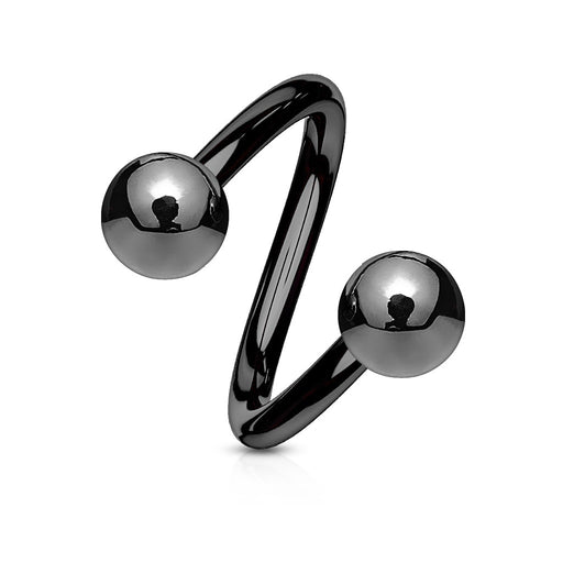 Show off a twisty new look when you wear this unique black titanium spiral belly button ring. This belly ring has a 5mm ball on each side. 14 GA- 4...