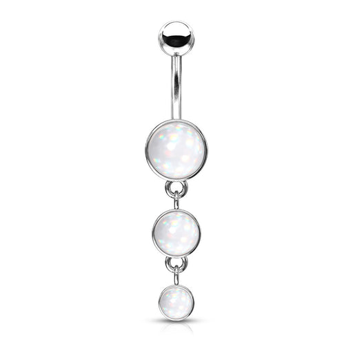 Triple Round Illuminating Stone Drop Dangle Belly Button Navel Ring. 316L Surgical Steel material. 14 GA. 3/8" barbell. Beautiful delicate drops wi...