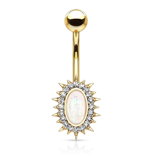Crystal Paved Sunburst with Opal Glitter Center 316L Surgical Steel Belly Button Navel Ring. Smaller size with a huge amount of sparkle. Classic lo...