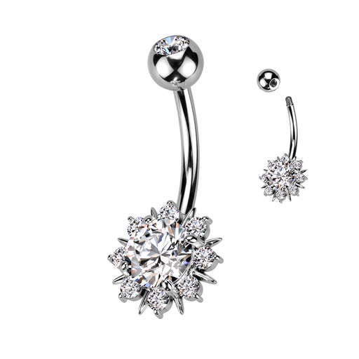 Silver 316L Surgical Steel Belly Ring With Round CZ Center Sunburst Smaller size with a huge amount of sexy sparkle. Classic look and perfect for a...
