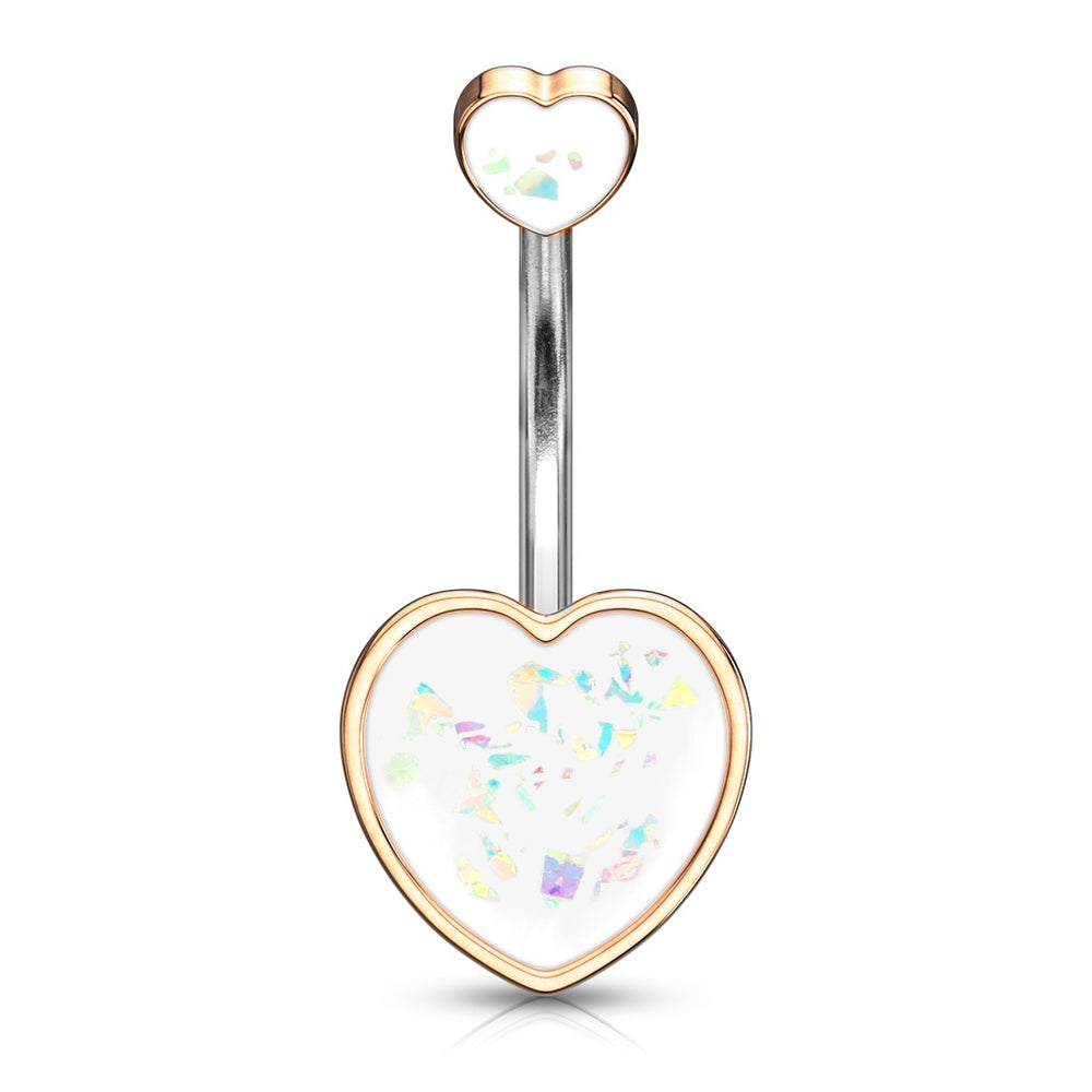 Home White Double Hearts Opal Glitter Belly Ring Rose Gold