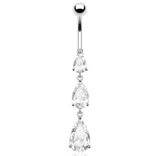 14K White Gold Top Down Triple CZ Stones Dangle Belly Ring
