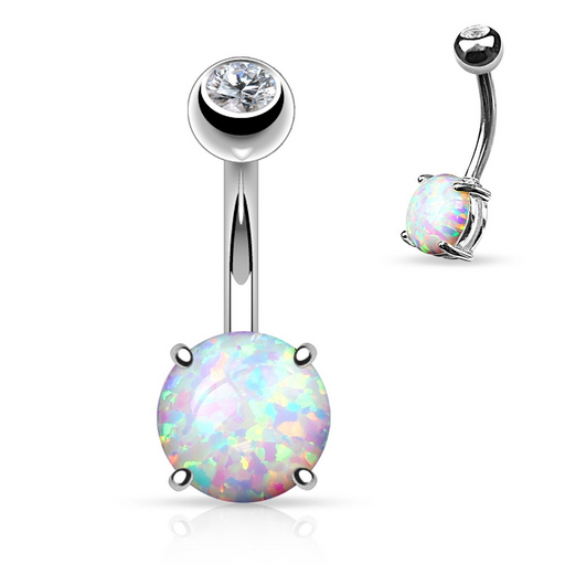 Prong Set 6mm Opal Stone 14K Gold Navel Ring. Real Gold. This one is a beauty! It's simple and classic and perfect for any event! 14kt white gold. ...