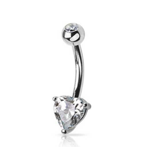 Heart CZ Prong Set 14 Karat Solid White Gold Navel Ring. Stamped with 14k on the barbell. Enjoy the luxury and sparkle of a 14KT gold belly ring. H...